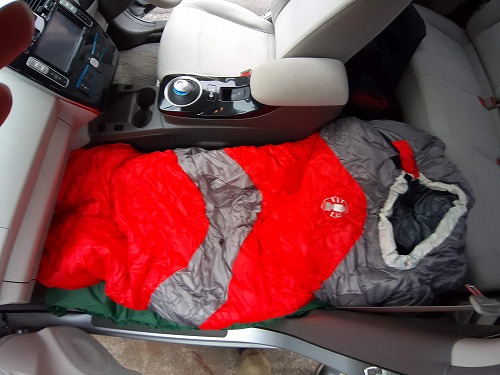 ボク:はい、狭いので、助手席外してベッドスペースを作ったんです。ほら。