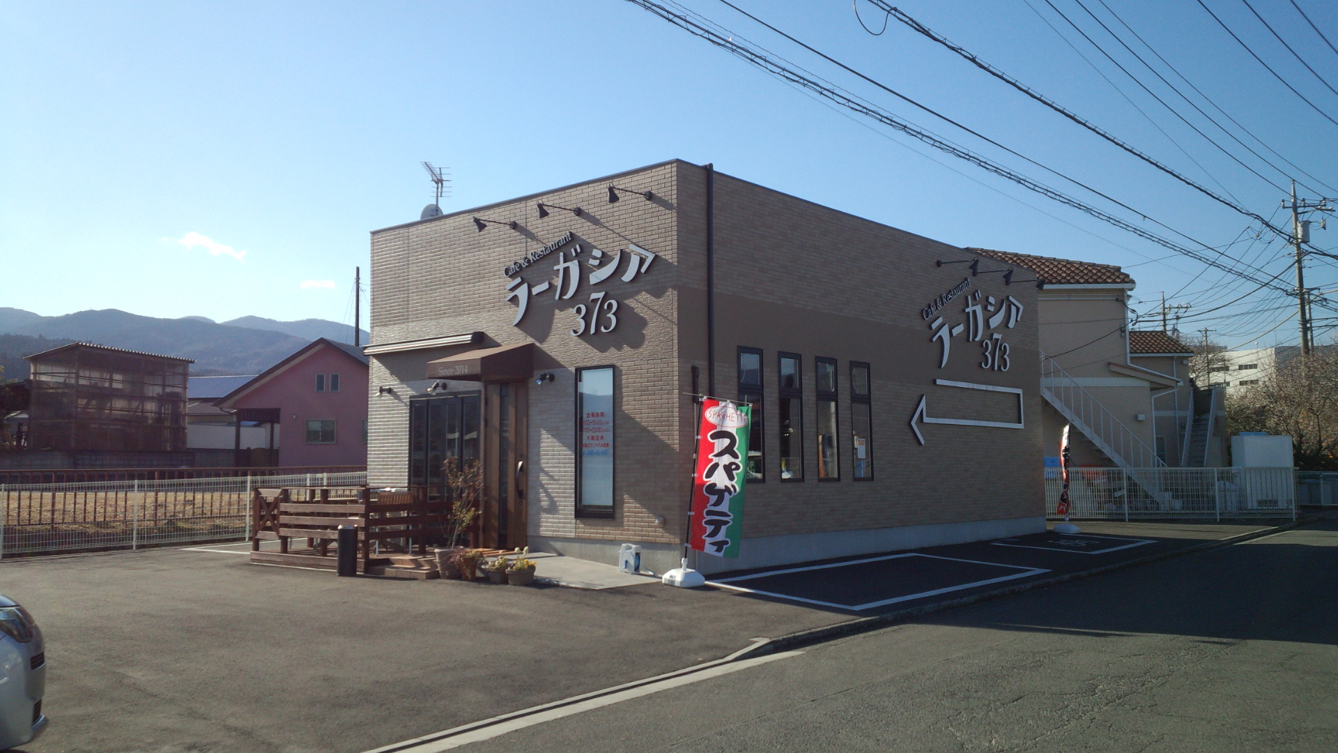 ちょっと美容室っぽいかんじだけどおちゃめなスパゲティののぼりでイタリアンと判別。