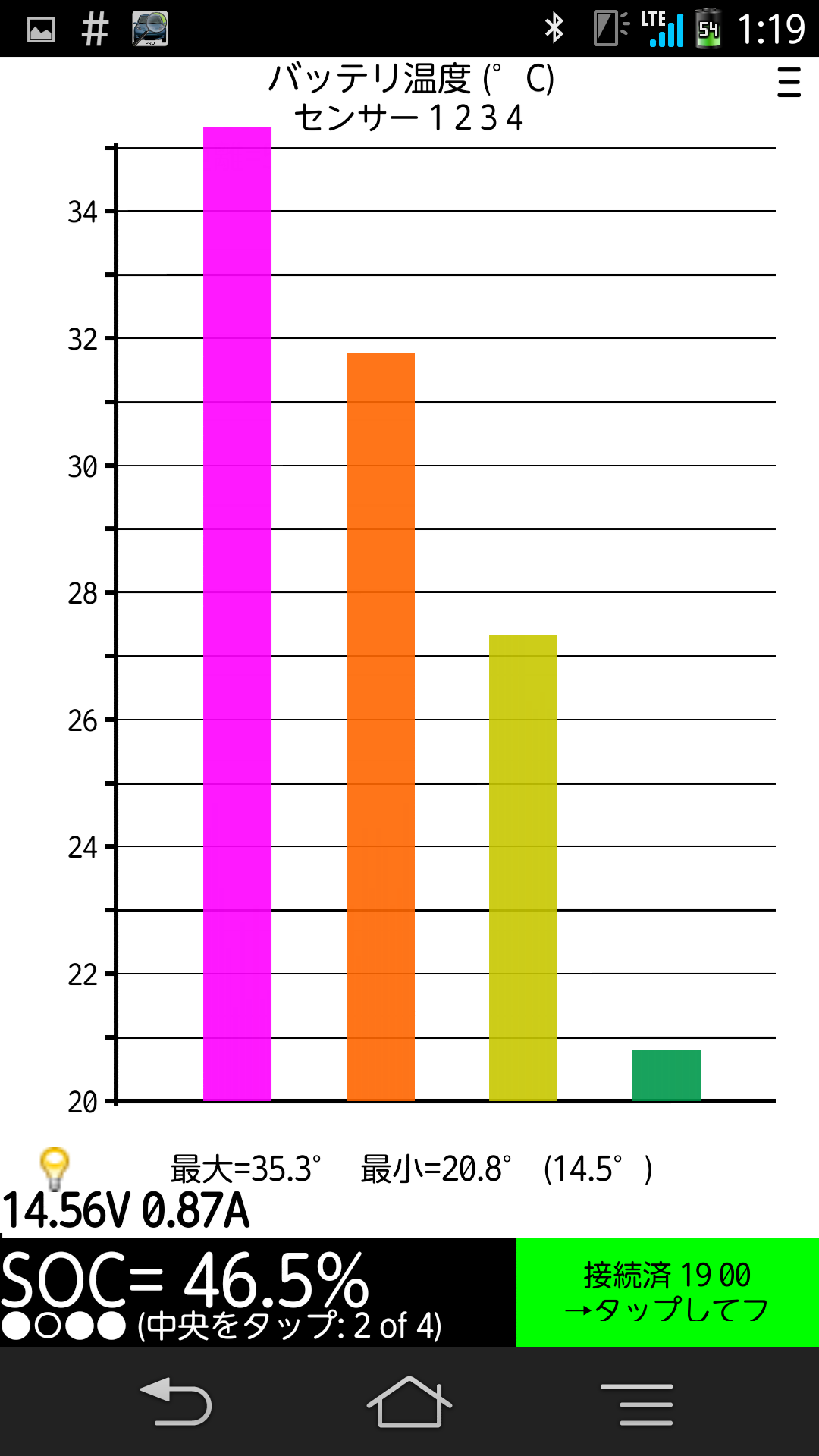 これはセルの電圧です。ボクの修行を積んだリーフはバッテリーの中がいろいろな