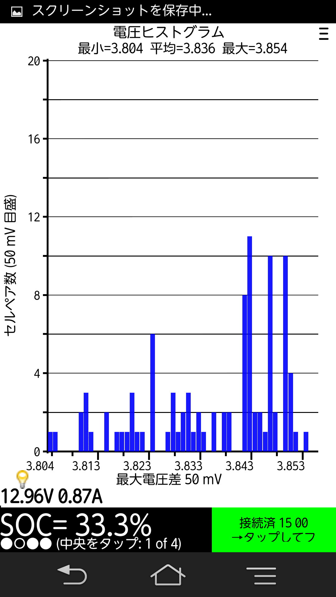 ヒストグラムと言って、統計で、度数分布を示すグラフだそうです。電圧いくつのセルが何個あって、