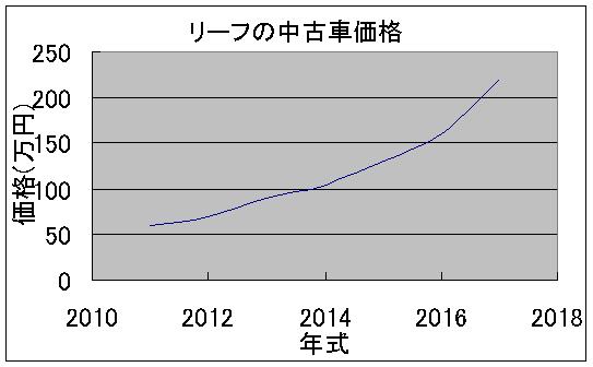 すでに30万円まで下がっている初期型リーフは一年あたり30万円以上値下がりしないのです。