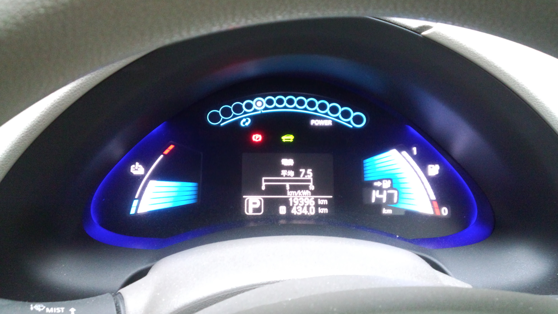 航続距離の表示が147km。燃費もそんなによくなくて7.5km/kWh。